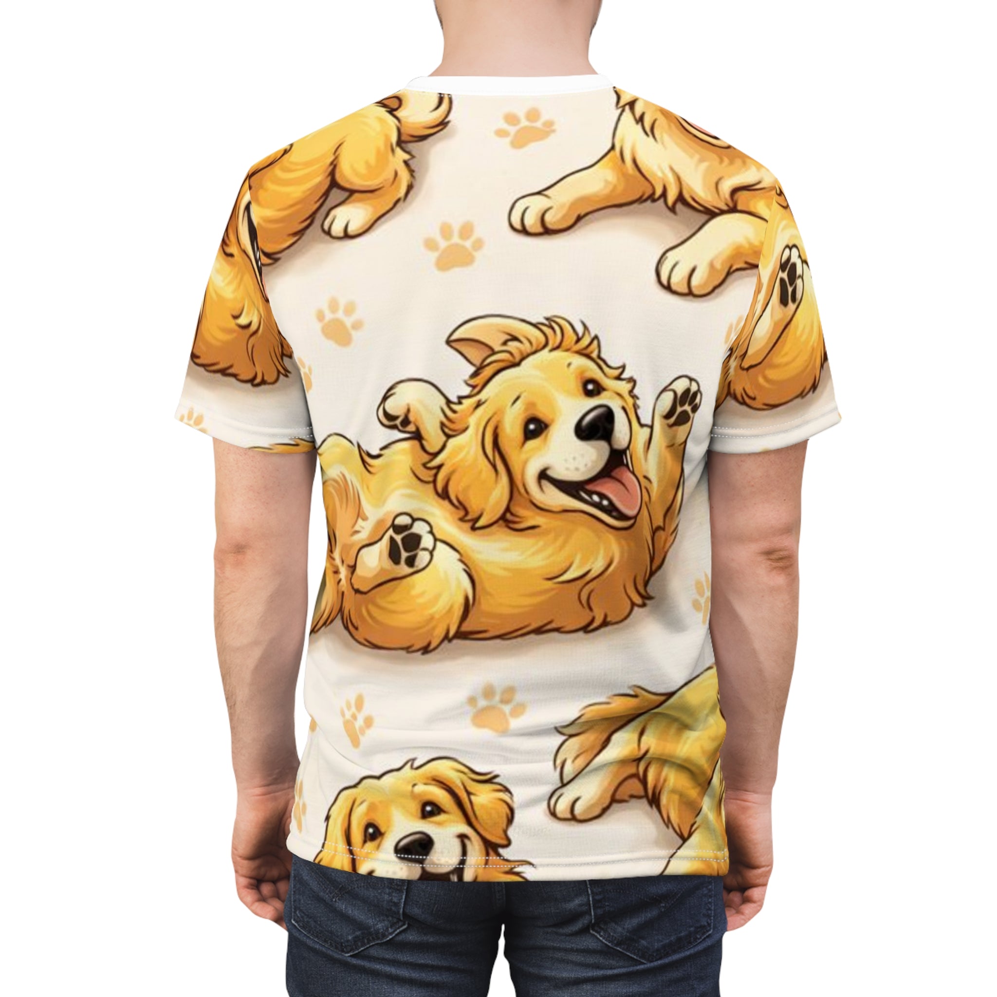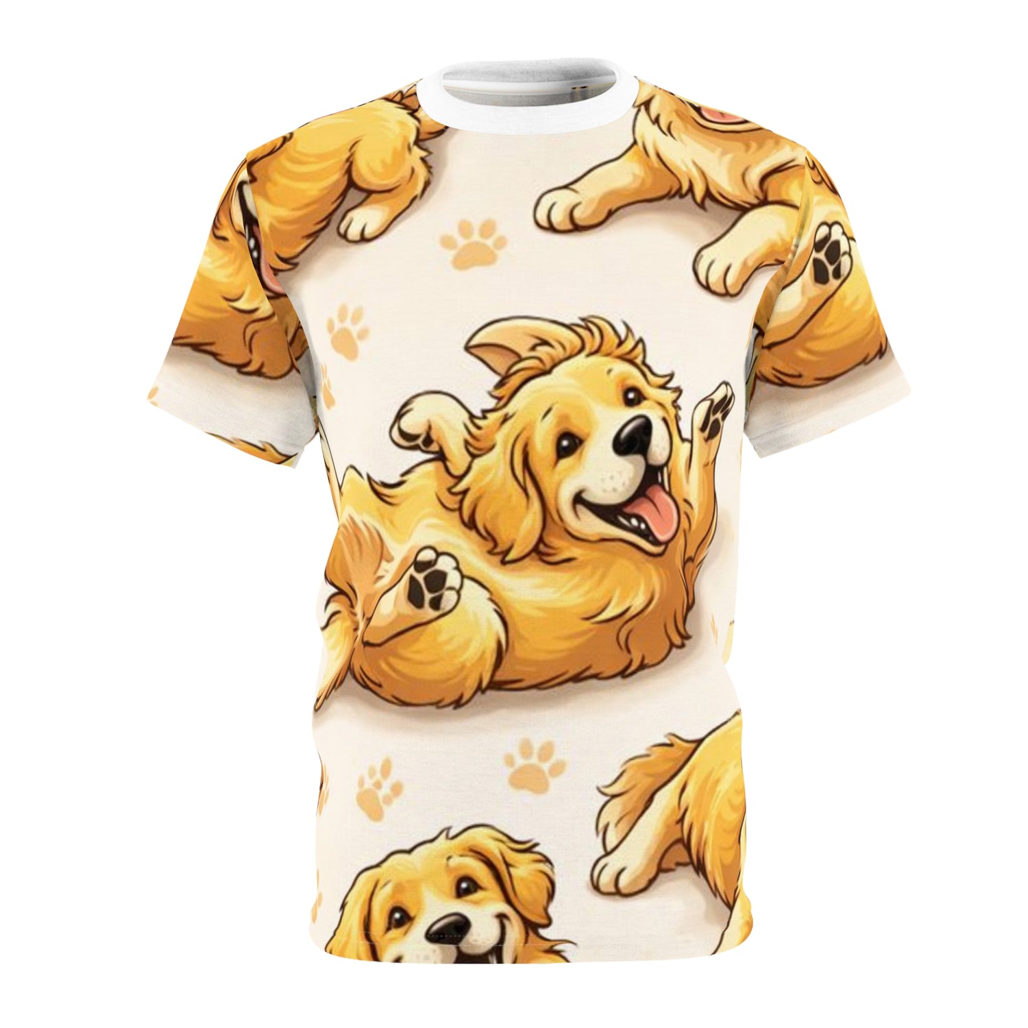 Premium all-over print tee inspired by the joy, love, and lovable chaos of life with a Golden Retriever. Designed for comfort, personality, and everyday wear.